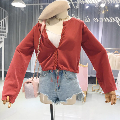 Hàn Quốc phiên bản của rắn màu Slim áo sơ mi nữ 2018 mùa hè mới cao đẳng gió dài tay áo đơn ngực hoang dã knit cardigan áo len gile nữ