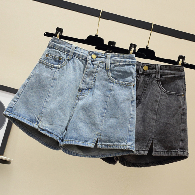 Hàn Quốc phiên bản của retro cao eo quần chân ngã ba quần short denim nữ sinh viên đã mỏng cộng với chất béo xl chất béo mm rộng chân nóng quần thời trang công sở nữ cao cấp