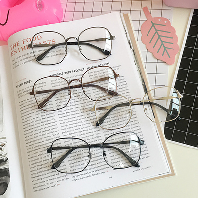 Hàn Quốc siêu nhẹ dễ thương kim loại vuông phẳng gương retro kính nữ khung đàn ông với kính cận sinh viên kính em bé Kính