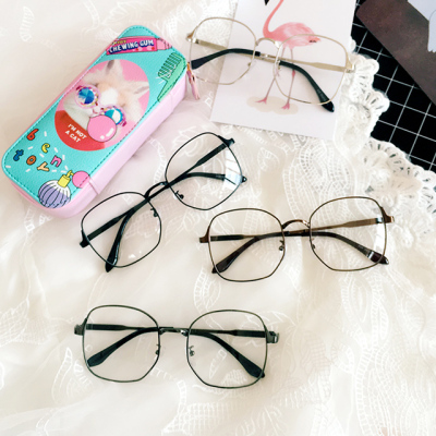 Hàn Quốc siêu nhẹ dễ thương kim loại vuông phẳng gương retro kính nữ khung đàn ông với kính cận sinh viên kính em bé