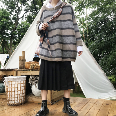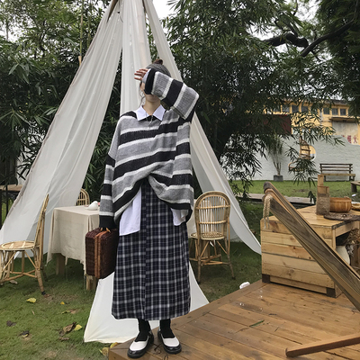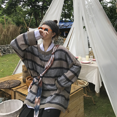 Hanada window Q897 áo len sọc nữ tay dài 2019 áo len mùa thu mới lười gió lửng sơ mi mỏng - Đan Cardigan khoác cardigan Đan Cardigan