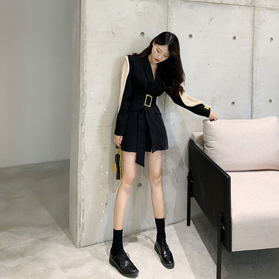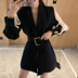 Hàng châu Âu đầu thu 2019 đầu thu nữ triều châu Âu trạm trái tim máy nhỏ váy đen váy ngắn một từ phù hợp với váy - A-Line Váy váy chữ a công sở A-Line Váy