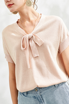 Hàng dệt kim mà Belle Garden có thể mặc vào mùa hè! Long lanh dòng v-cổ tie đan ngắn tay t-shirt 18 mùa hè áo len nam