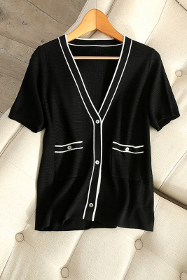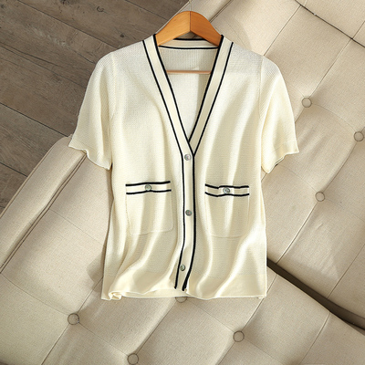 Hàng hóa châu âu 2018 mùa thu mới hương thơm nhỏ V-Cổ túi đôi phương thức ngắn tay mỏng dệt kim cardigan phụ nữ Châu Âu và Mỹ áo len cao cổ nữ