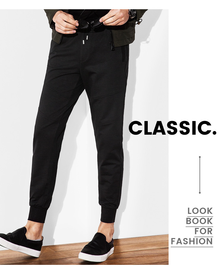 Hàng ngàn con hạc giấy nam quần bó sát Hàn Quốc Eo thon eo Quần Harlan chân kín miệng quần giản dị 9819 quần ống rộng nam