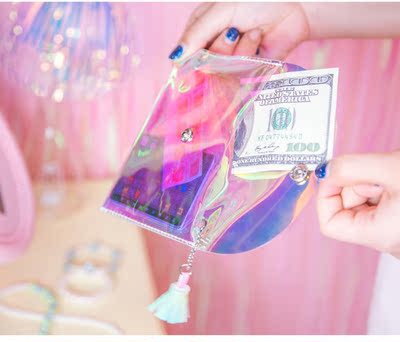 Harajuku gió tua laser purse tươi văn học jelly gói sinh viên cầu vồng màu nhỏ trong suốt túi lưu trữ ví nam gucci Ví tiền
