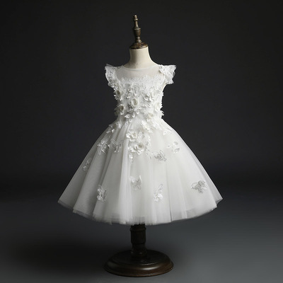 Hoa cô dâu công chúa váy cô gái sinh nhật chủ nhà catwalk fluffy váy trẻ em trang phục piano mới váy dài tay bé gái