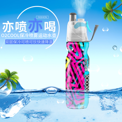 Hoa Kỳ O2COOL thể thao sáng tạo chai tay cup xách tay mùa hè đa chức năng spray cup nam và nữ chai nước sinh viên bình nước thể thao bóng đá