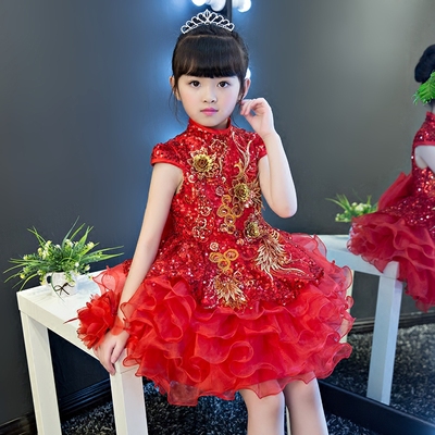 Hoa sinh nhật cô gái trang phục piano dài đuôi đỏ cô gái chủ nhà catwalk đám cưới công chúa váy trẻ em - Váy trẻ em quần áo trẻ em cao cấp