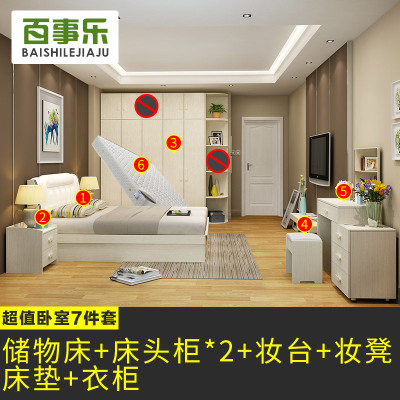 Hoàn thành bộ nội thất phòng ngủ kết hợp đơn giản hiện đại giường đôi tủ quần áo bàn trang điểm bàn đầu giường nệm bộ sáu đặc biệt giường gỗ Bộ đồ nội thất