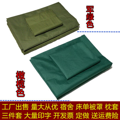 Học sinh Tập huấn quân sự Ký túc xá Đơn vị duy nhất Bông màu Chăn Chăn Ô liu Tấm bìa Quân đội ba mảnh Xanh lục thảm trải giường mùa hè Khăn trải giường