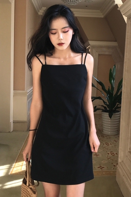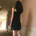 Hồng Kông hương vị Hàn Quốc phiên bản của chic từ cổ áo sexy nữ tính đôi dây đeo quây màu rắn túi hip váy váy nữ triều váy hạ eo xếp ly