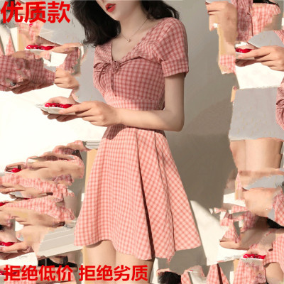Hồng Kông-phong cách retro chic cao eo kẻ sọc A-line váy với eo váy mùa hè trung học sinh viên đại học bạn gái đầm xòe trễ vai voan A-Line Váy