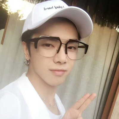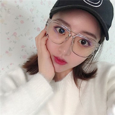 Huachen Yu với mạng kính màu đỏ retro Han Chao trong suốt, khung kính nửa khung lớn chống bức xạ màu xanh với cận thị kính mát