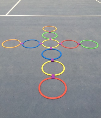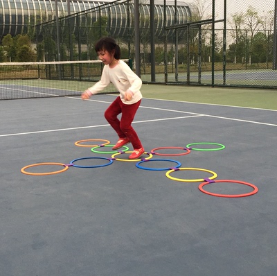 Huấn luyện viên quần vợt Nhảy kẻ sọc Hopscotch Đào tạo Nhẫn nhựa mềm Nhẫn thể thao Dạy đồ chơi vợt tennis cho trẻ em 6 tuổi