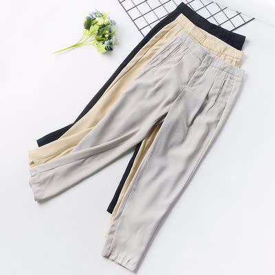 I11 mùa hè Hàn Quốc phiên bản của cao eo thẳng quần phù hợp với quần phần mỏng feet chín điểm quần âu phụ nữ rắn màu triều hoang dã quần áo nữ