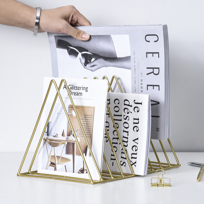 Ins Bắc Âu sáng tạo sắt rèn nhỏ kệ sách để bàn trang trí lưu trữ giá đơn giản cuốn sách kim loại báo trang trí nội thất Trang trí nội thất