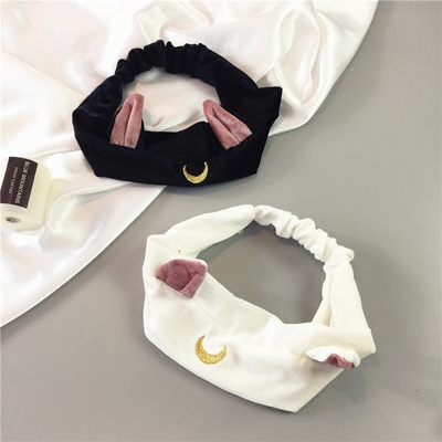Ins dễ thương tai thêu mặt trăng headband Phụ kiện tóc Hàn Quốc rửa tóc ban nhạc đàn hồi đàn hồi headband trang sức thủy triều băng đô cho bé