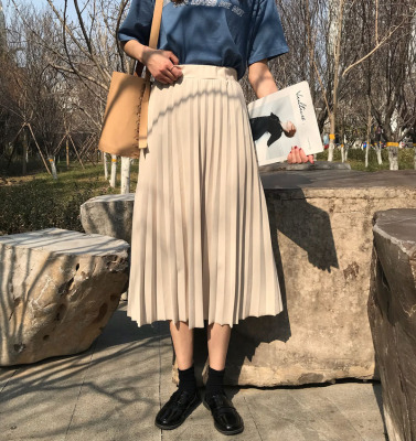 Ins retro tính khí hoang dã màu rắn đàn hồi cao eo xếp li xếp li váy trong chiếc váy dài Hàn Quốc 2018 mùa xuân chân váy ôm
