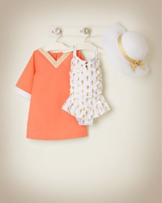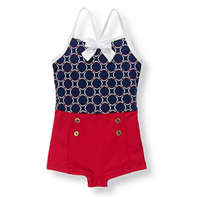 Janie & jac cô gái áo tắm một mảnh Riviera màu xanh hải quân sọc hoa hippocampus tính khí quần áo trẻ em cao cấp