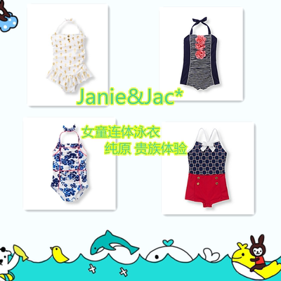 Janie & jac cô gái áo tắm một mảnh Riviera màu xanh hải quân sọc hoa hippocampus tính khí quần áo trẻ em cao cấp Đồ bơi trẻ em