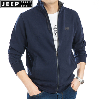 JEEP nam dài tay áo len cotton kích thước lớn áo khoác đứng cổ áo cardigan rắn màu Zipper Zipper Jacket ngoài trời hàng đầu áo len nam