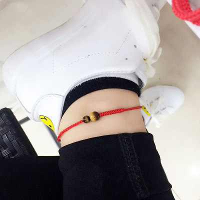 [Ji Cai Pi Xiaoren tăng sự tự tin] chàng trai và cô gái đá mắt hổ tự nhiên dệt dây đeo vòng tay trang sức vòng chân đỏ lắc chân pnj Vòng chân