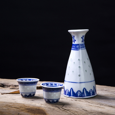Jingdezhen cổ điển màu xanh và trắng men rượu vang màu tinh tế đặt rượu vang bình rượu khách sạn nhà Trung Quốc ấm rượu bình bộ ly uống rượu vang Rượu vang