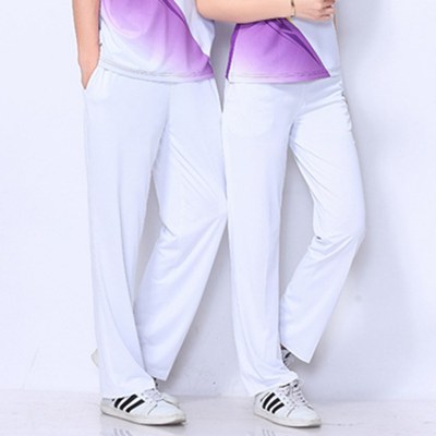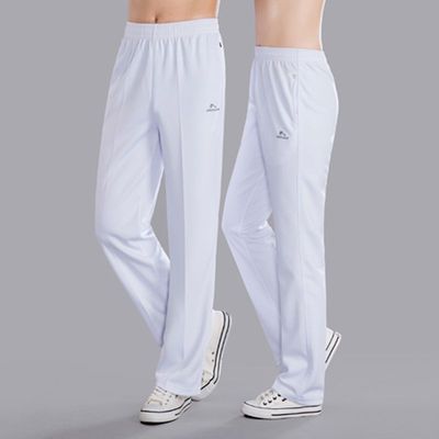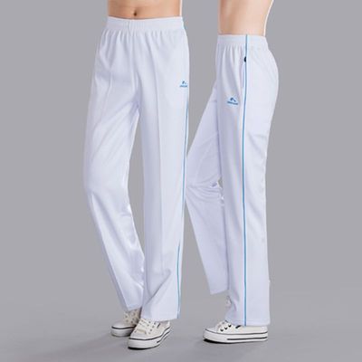Jinguan mùa xuân và mùa hè mùa thu quần thể thao màu trắng quần nam và nữ quần thường quần rộng kích thước lớn quần thể thao nhóm quần thể dục quần thể dục 2 sọc