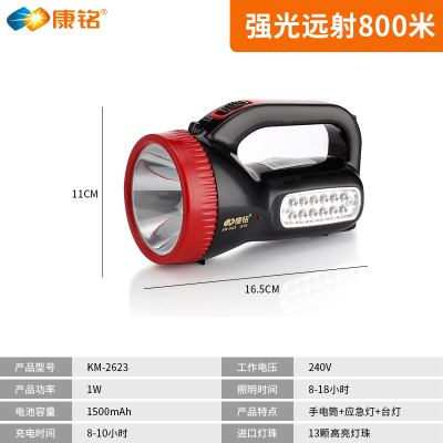 Kang Ming sạc LED chói đèn pin di động tìm kiếm ngoài trời chiếu sáng nhà siêu sáng đèn khẩn cấp tầm xa đèn pin công suất lớn