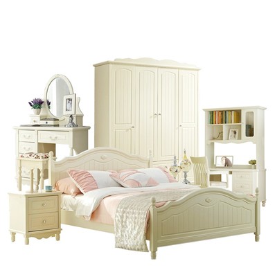 Kết hợp bộ đồ gia đình màu trắng Bộ đồ nội thất hoàn chỉnh giường hộp