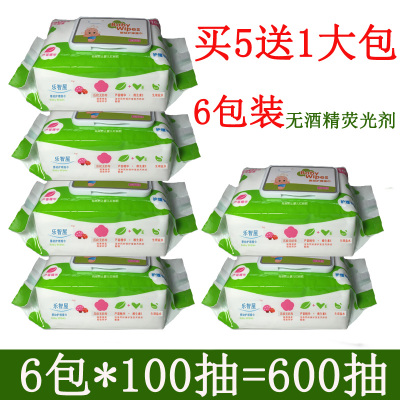 Khăn lau Lezhiwu Bé 100 bơm trẻ sơ sinh Em bé lau mông ướt Mua 5 tặng 1 tổng 6 gói khăn giấy ướt tốt cho da mặt Khăn ướt