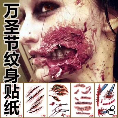 Khâu thây ma Halloween mỹ phẩm dán mặt trang điểm dán hình xăm vết sẹo không thấm nước khâu mặt dán mô hình nước - Sản phẩm Đảng / Magic / Hiệu suất phụ kiện cosplay cổ trang