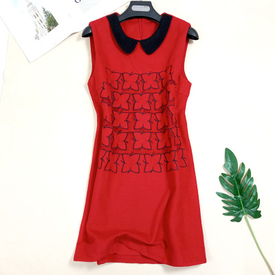 Khí hậu mát mẻ ngọt ngào cổ áo búp bê không tay dài Phần một phiên bản chất liệu váy 4394 mẫu váy xòe 2020