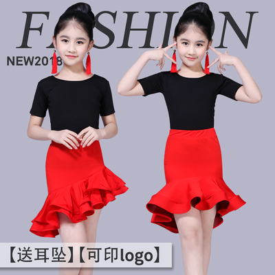 Khiêu vũ trẻ em váy mùa hè khiêu vũ Latin thực hành quần áo ngắn tay chia Latin biểu diễn chương trình phù hợp với cô gái phù hợp với cô gái áo len bé trai