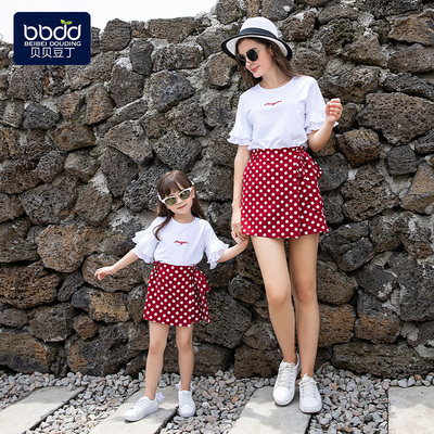 Không giống cha mẹ con cài cài gas ngoại 2019 mới hè hè lưới đỏ lắc lư âm thanh quần bé gái váy phù hợp với thời trang nữ - Trang phục dành cho cha mẹ và con bộ pijama cho nhà 4 người