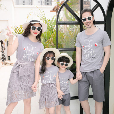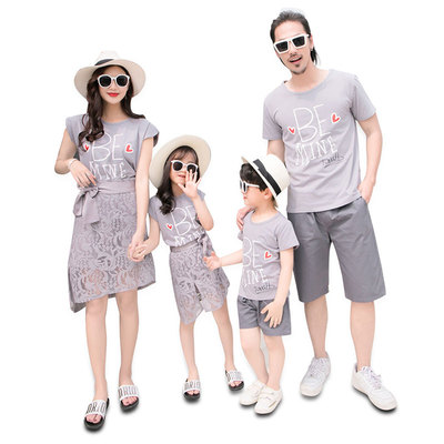 Không phải cùng một mùa hè cha mẹ và con cái một gia đình bốn áo thun dài tay đầy đủ ren mẹ và con gái váy phù hợp với nước ngoài - Trang phục dành cho cha mẹ và con quần áo gia đình đẹp Trang phục dành cho cha mẹ và con
