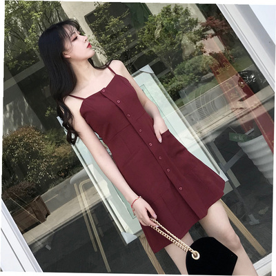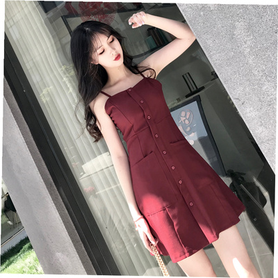 Không tay màu đỏ một chiếc đầm nữ mùa hè 2018 khí chất retro mới gầy gò trong bộ váy dài dây gió nhẹ nhàng. váy chữ a liền