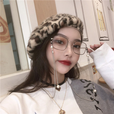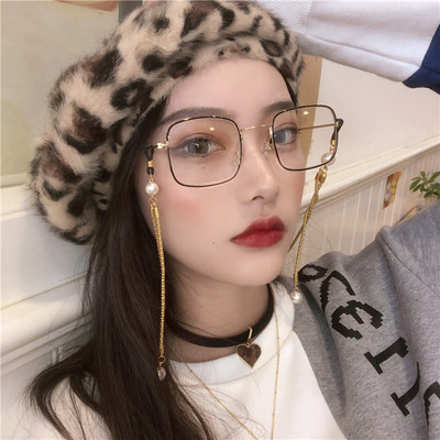 Khung vàng mỏng hiển thị mắt to kính retro vẻ đẹp nữ khung vuông có thể được trang bị kính cận chuỗi ngọc trai thủy triều kính mát