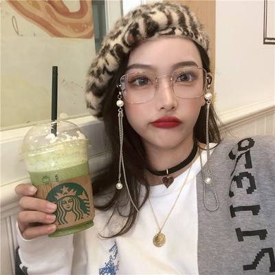 Khung vàng mỏng hiển thị mắt to kính retro vẻ đẹp nữ khung vuông có thể được trang bị kính cận chuỗi ngọc trai thủy triều kính mát Kính