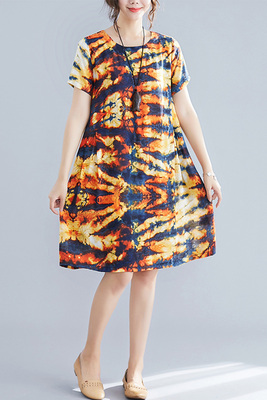 Kích thước lớn của phụ nữ 2019 mùa hè nghệ thuật retro mới in chị em béo mập Một từ ngắn tay cotton và váy lanh - A-Line Váy váy xòe