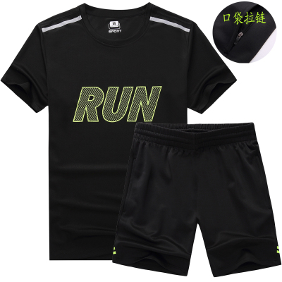 Kích thước lớn lỏng thể thao phù hợp với nam giới đêm chạy phản chiếu chạy quần áo đi xe đạp mặc mồ hôi thấm thở thủy triều của nam giới ngắn tay mặc giản dị bộ nỉ nam adidas Thể thao sau