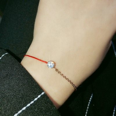 Kim cương đơn chuỗi nửa vòng đeo tay dây đỏ nữ bằng thép mạ vàng 18k vòng chân vàng hồng Nhật Bản và Hàn Quốc của món quà S007 vòng gỗ sưa