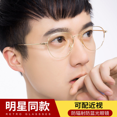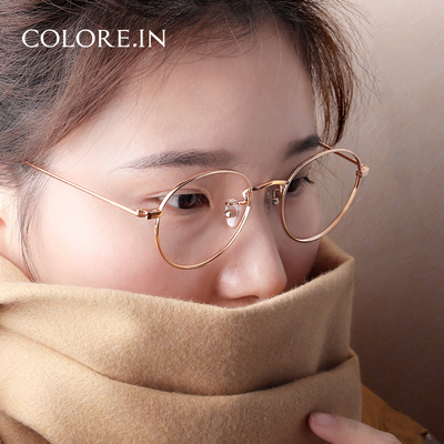 Kính cận thị độ nữ phiên bản Hàn Quốc của mặt tròn thủy triều có thể được trang bị gương cận thị mạng kính đỏ khung gọng kính khung khung nam - Kính khung gọng kính titan Kính khung