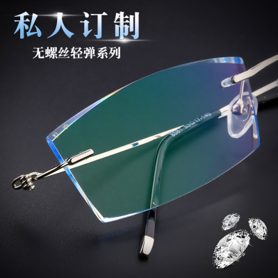 Kính cận thị Kính nam siêu đàn hồi siêu nhẹ siêu mịn khung kim cương cắt tỉa không vành kính lớn mặt phẳng màu gương phẳng kính mắt quang nhãn