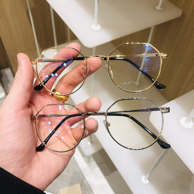 Kính đa giác retro gọng kính nữ tròn mặt phẳng không đều kính nam triều Su Yan chống ánh sáng xanh cận thị khung mắt - Kính khung kính cận nam