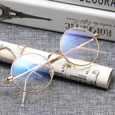 Kính gọng tròn retro kính nữ sinh viên không độ trang trí kính đồng bằng khung mắt kính nữ cận thị kính nam - Kính khung gọng kính tròn Kính khung