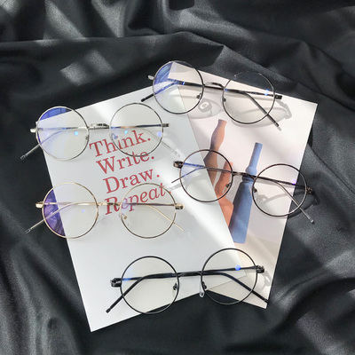 Kính nữ màu đỏ phần phiên bản Hàn Quốc của khung tròn kim loại thủy triều mỏng bằng gương phẳng văn học retro đồng bằng cận thị - Kính kính monster Kính