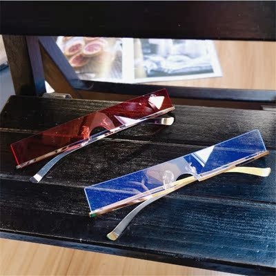 Kính râm ngộ nghĩnh nữ cá tính phóng đại đường phố Xiêm đập lưới đỏ thanh dưới nửa hộp nam hipster kính râm khung phẳng - Kính kính mắt lily Kính