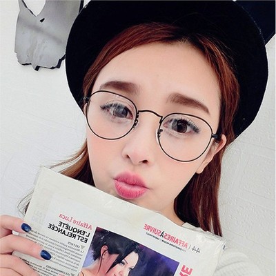 Kính retro khung kim loại nữ nghệ thuật mạng màu đỏ phiên bản Hàn Quốc của thủy triều mặt lớn phẳng siêu nhẹ có thể được trang bị khung kính nam cận thị mắt kính cận